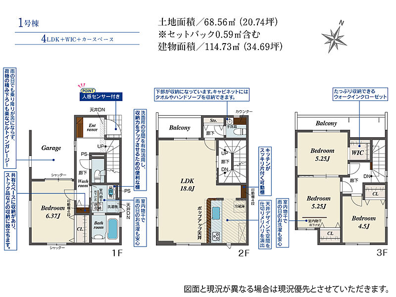 | 建物面積 | 114.73m2(約34.70坪) | 土地面積 | 68.56m2(約20.73坪) |