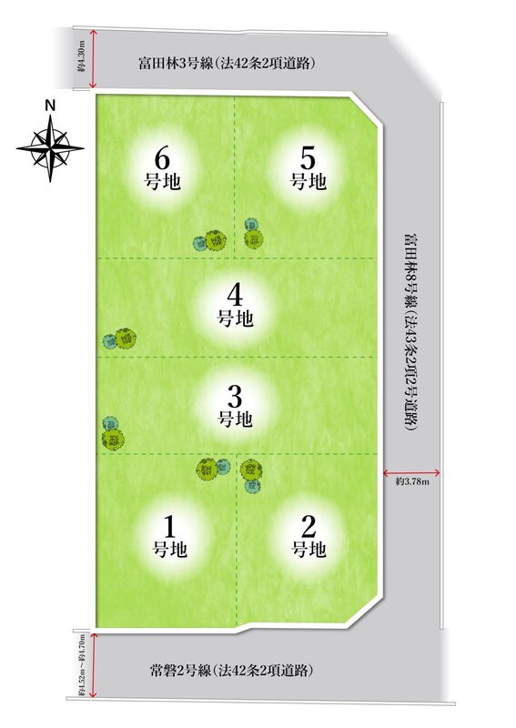 | 駐車場 | 2台(車種による) | 道路の幅員 | 北側 約4.30m、南側 約4.52m~約4.70m、東側 約3.78m (※道路後退後) |
