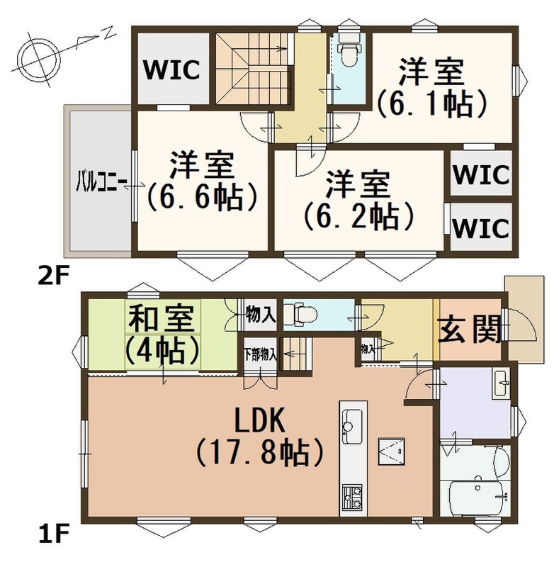 | 建物面積 | 98.12m2 (29.68坪)・98.45m2 (29.78坪) | 土地面積 | 119.26m2(36.07坪)・123.78m2(37.44坪) |