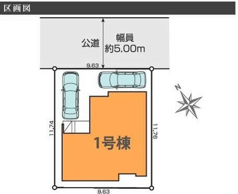 | 駐車場 | 2台 | 道路の幅員 | 道路幅:5m、アスファルト舗装、北東側 5m 公道 |