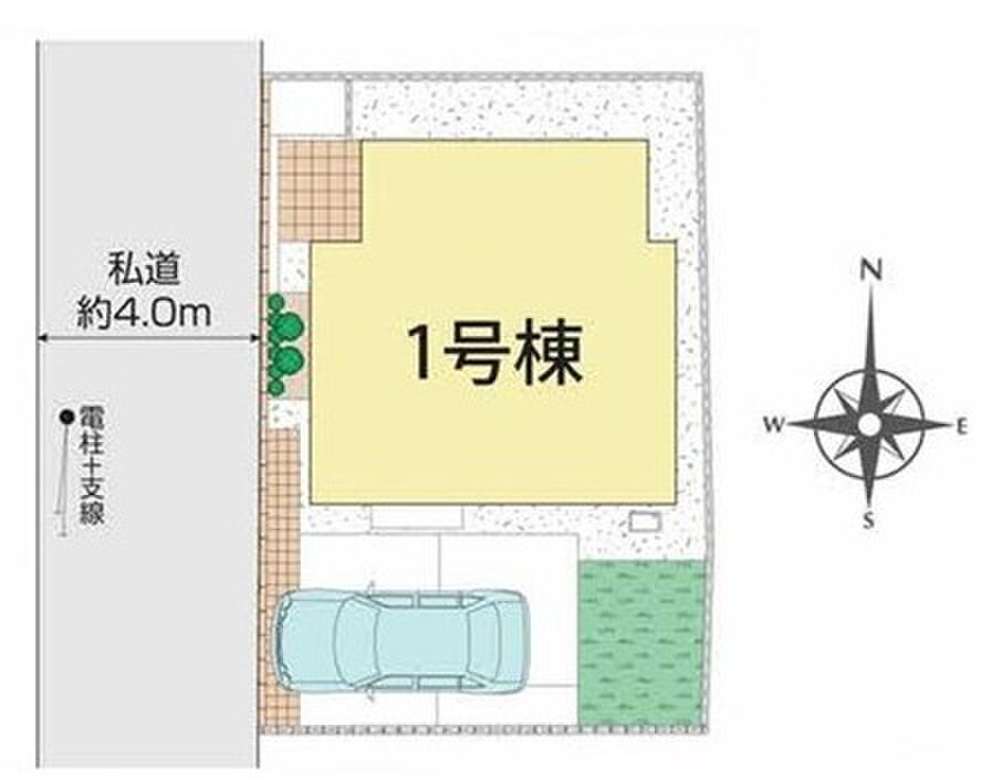 | 駐車場 | 1台 | 道路の幅員 | 道路幅:4m、アスファルト舗装、 西 4m 私道 |