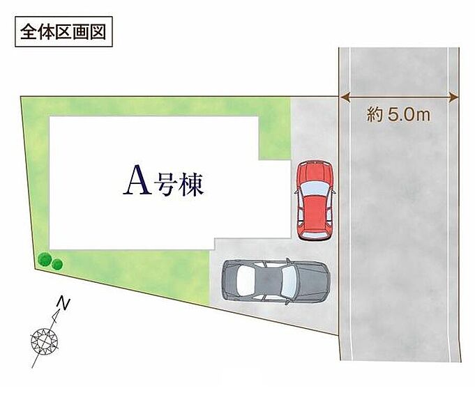 | 駐車場 | 2台(車種による) | 道路の幅員 | 道路幅:5m、アスファルト舗装、北東 5m 公道 |