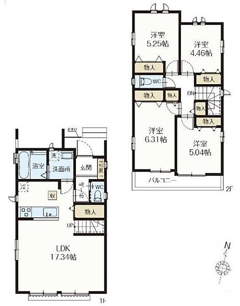 F号棟 間取り 4LDK 価格 4190万円 建物面積 90.1m2 土地面積 102.03m2 -