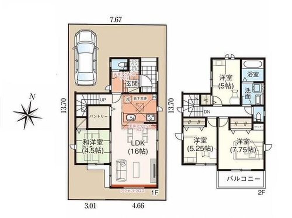 8号棟 間取り 4LDK 価格 3780万円 建物面積 96.25m2 土地面積 105.2m2 -
