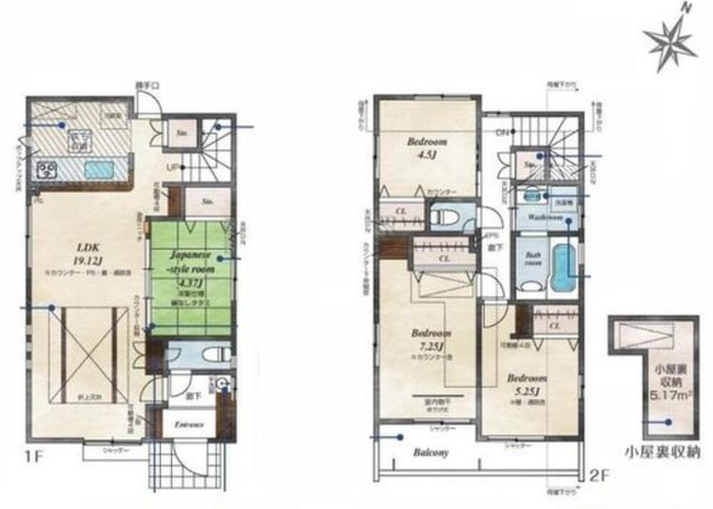| 間取り | 3LDK~4LDK | 建物構造 | 木造サイディング造アスファルトシングル葺2階建 |