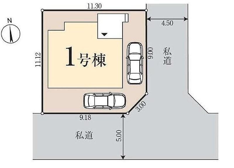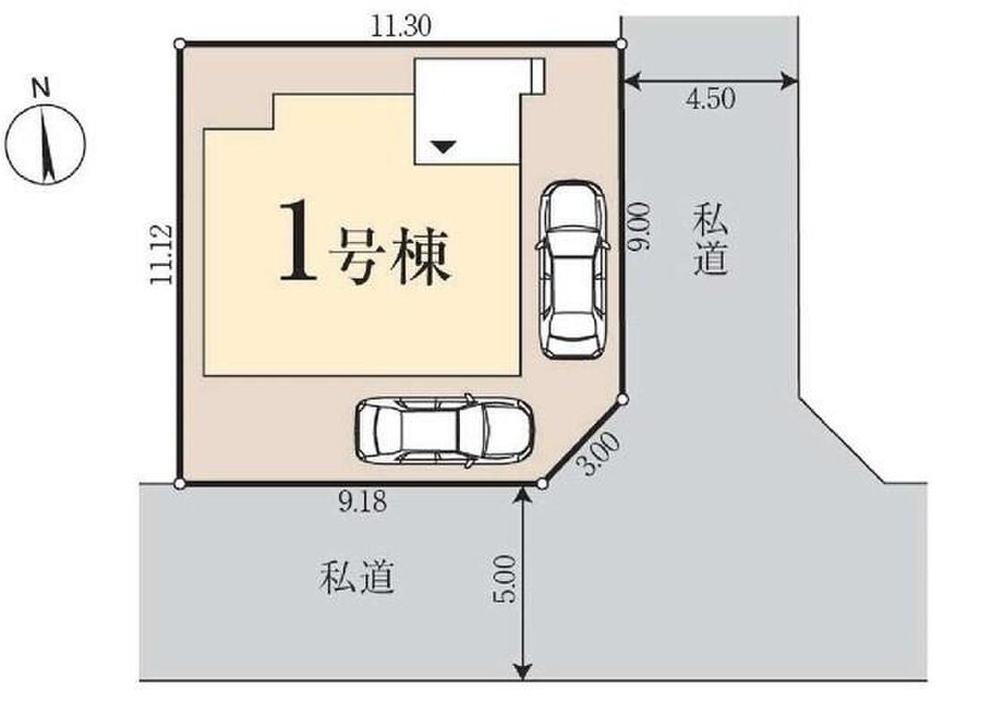 | 駐車場 | 2台 | 道路の幅員 | 道路幅:4.5m・5m、アスファルト舗装、角地 : 南側 5m 私道、東側 4.5m 私道 |