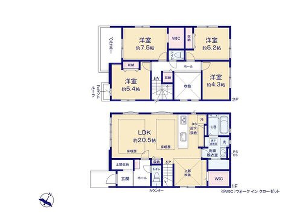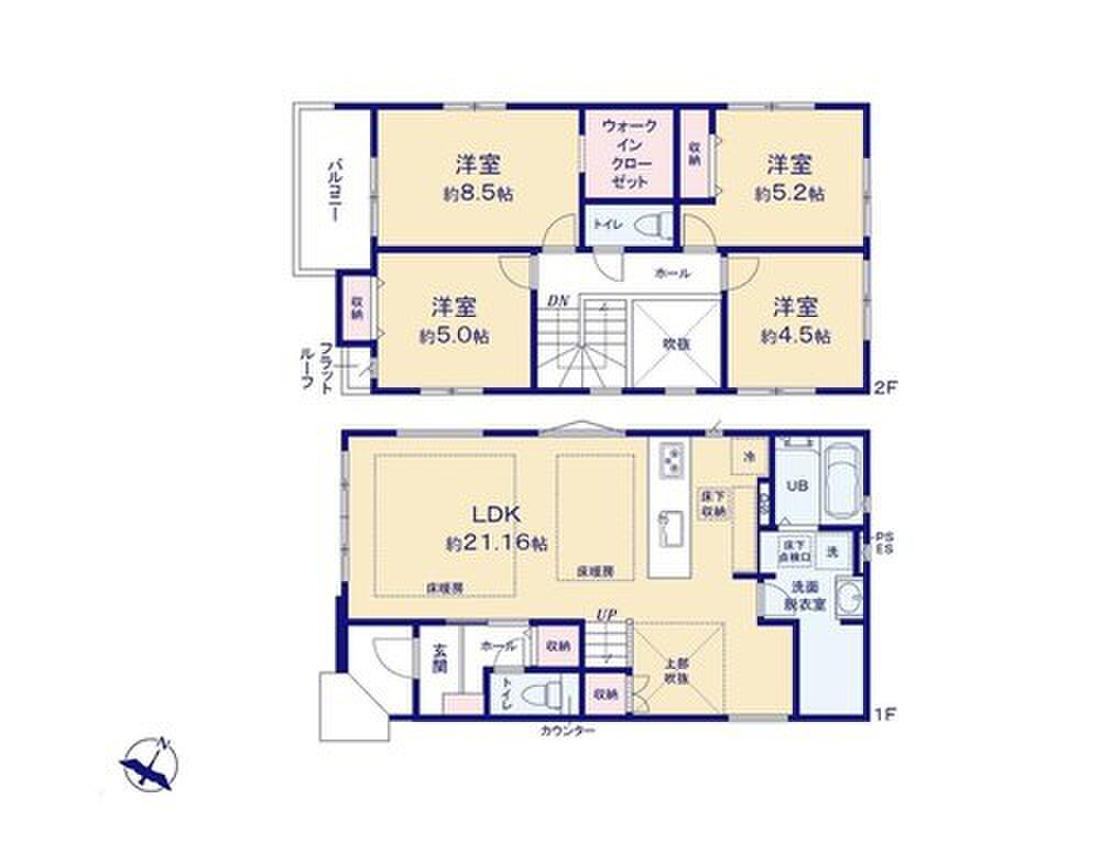 | 建物面積 | 101.43m2・104.87m2 | 土地面積 | 127.44m2~128.41m2 |