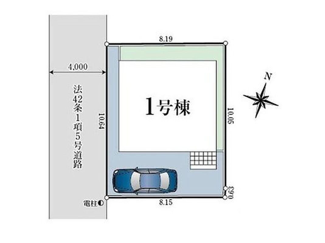 | 駐車場 | 1台 | 道路の幅員 | 道路幅:4m、アスファルト舗装、西側4m私道(法42条1項5号) |