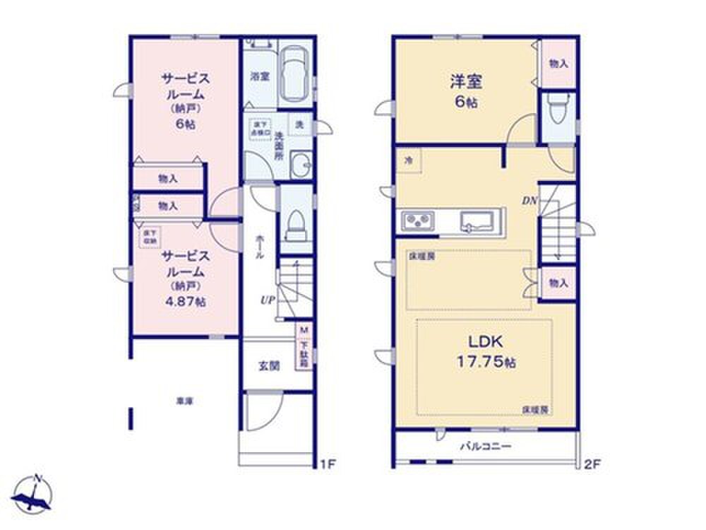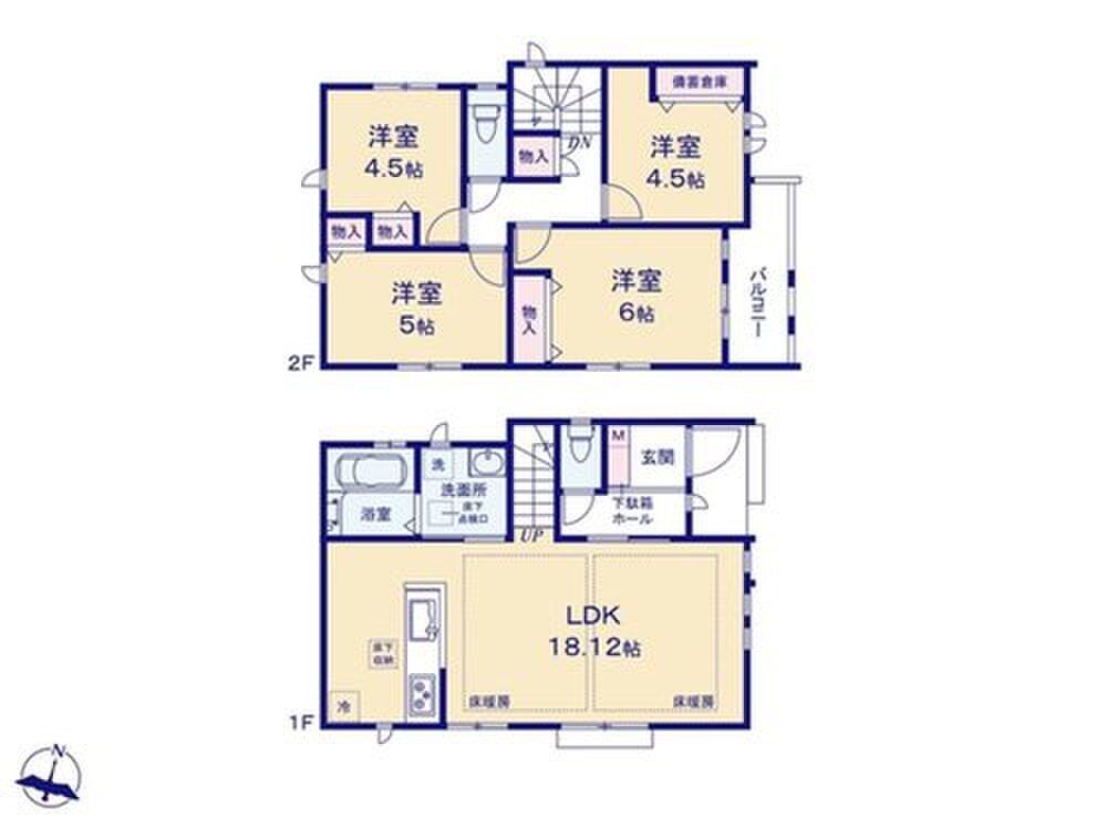 | 間取り | 1LDK+2S(納戸)~4LDK | 建物構造 | 木造サイディング貼アスファルトシングル葺2階建 |
