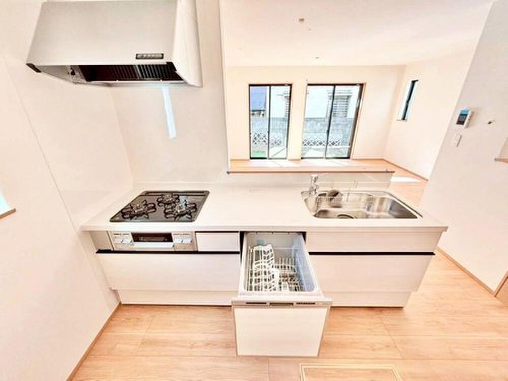 ママさんに人気のある対面式キッチン♪お食事の準備をしながらご家族との会話を楽しめます。リビングにいるご家族の様子が一目で分かるので、小さいお子様がいても安心です。