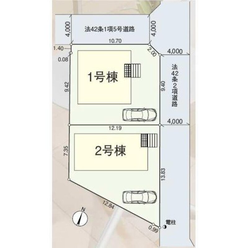 | 駐車場 | 1台 | 道路の幅員 | 道路幅:4m、アスファルト舗装、東側約4.0m公道・ 北側約4.0m私道 |