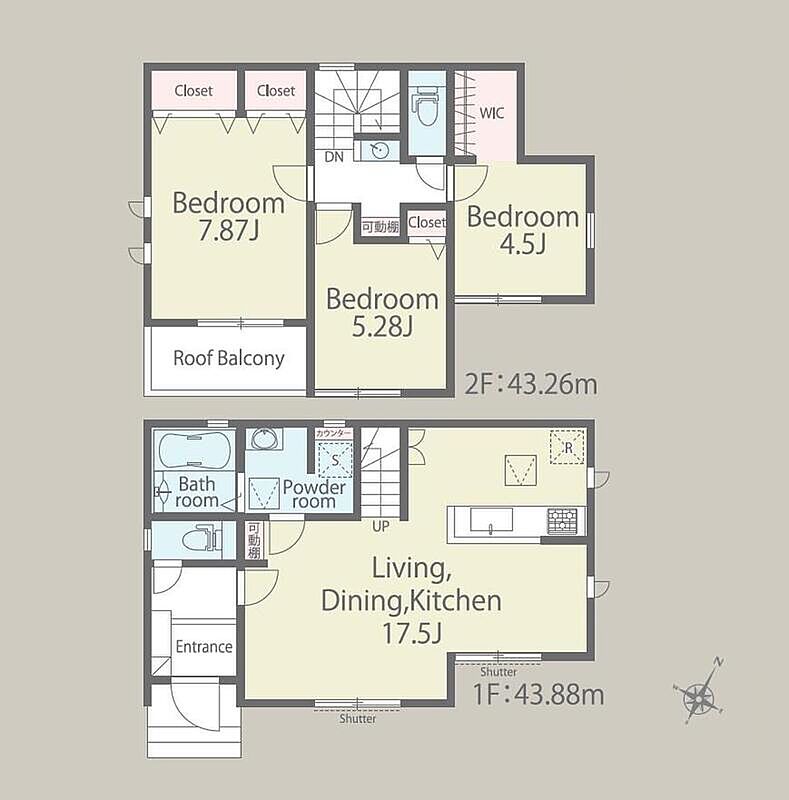 | 建物面積 | 87.14m2 | 土地面積 | 108.97m2 |