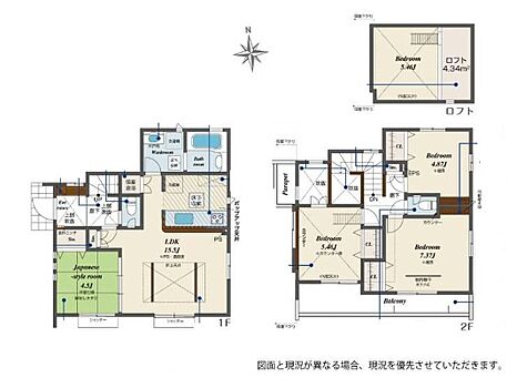 | 間取り | 3LDK・4LDK | 建物構造 | 木造サイディング造アスファルトシングル葺2階建 |