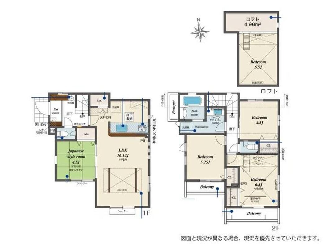 1号棟 間取り 4LDK 価格 6480万円 建物面積 89.57m2 土地面積 111.27m2 -