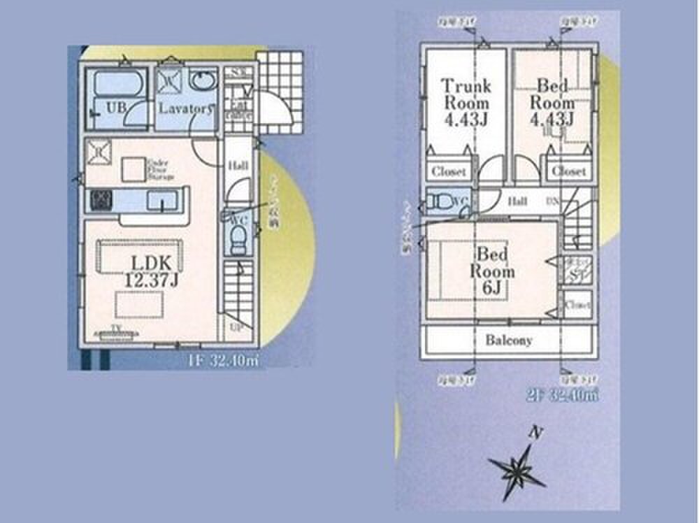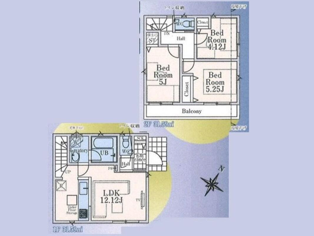 | 建物面積 | 63.18m2・64.8m2 | 土地面積 | 81.01m2・83.59m2 |