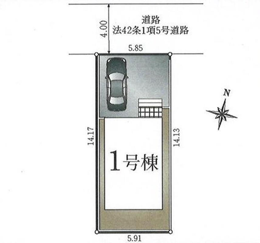 | 駐車場 | 1台 | 道路の幅員 | 道路幅:4m、アスファルト舗装、北側 4m 私道 ※私道持ち分なし |