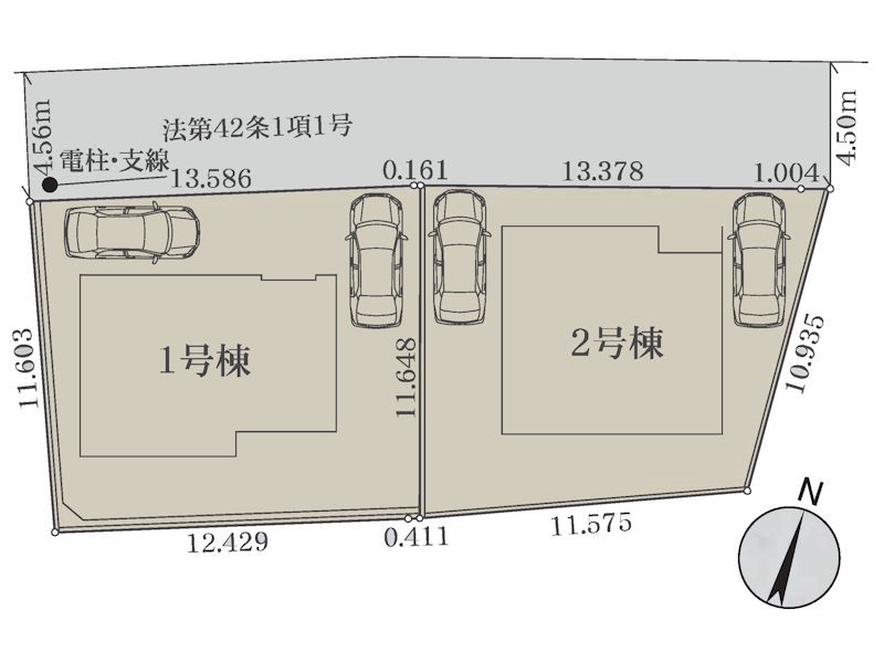 | 駐車場 | 2台 | 道路の幅員 | 2号棟:北4.5m |