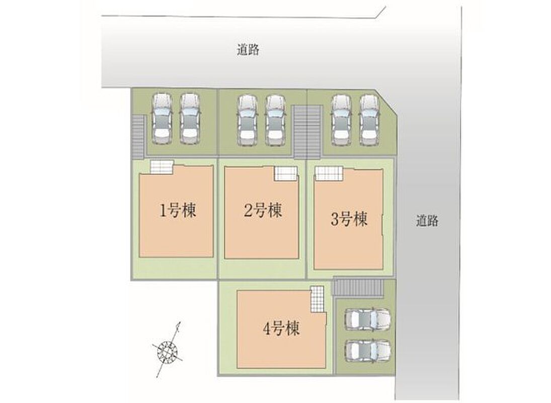 | 駐車場 | 2台 | 道路の幅員 | 1号棟:北6m /4号棟:東6m |