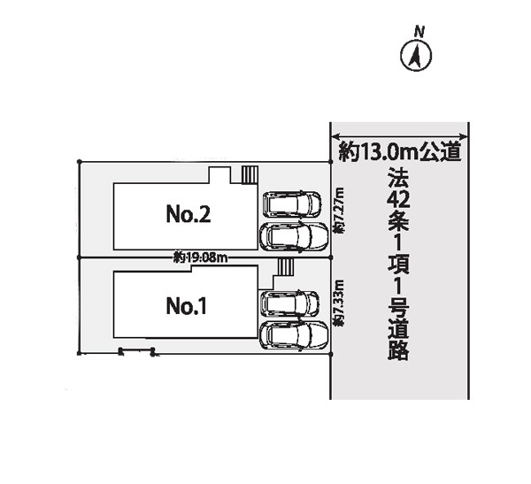 | 駐車場 | 2台 | 道路の幅員 | 1号棟:東13m |