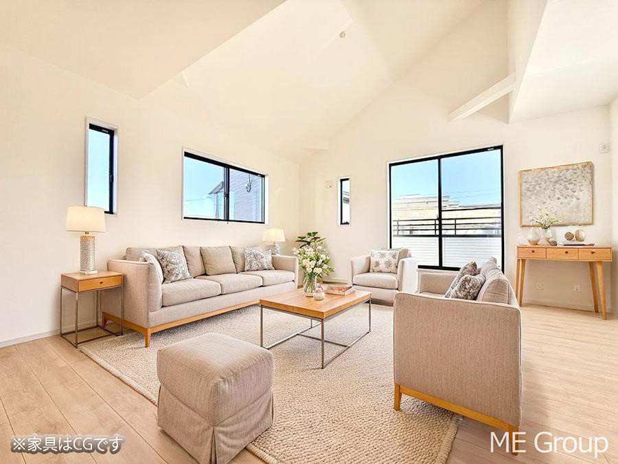- ※完成予想図やCG合成画像は、門塀・植栽・庭・外観等、実際とは多少異なる場合があります。