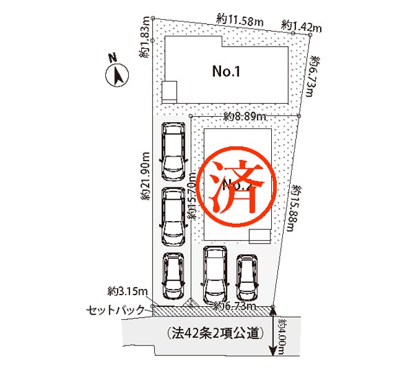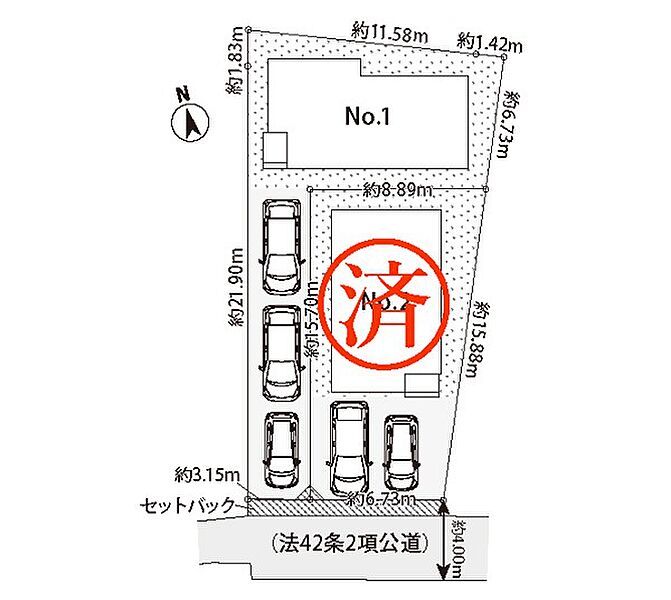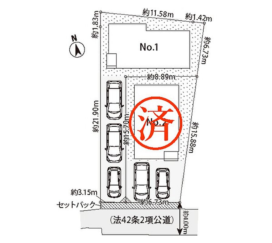 | 駐車場 | 3台 | 道路の幅員 | 1号棟:南3.1m |