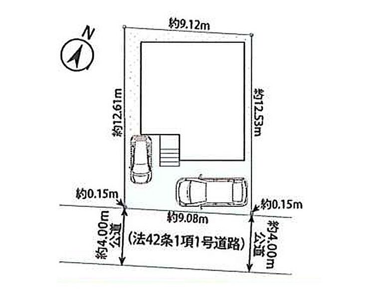 | 駐車場 | 2台 | 道路の幅員 | :南東4m |