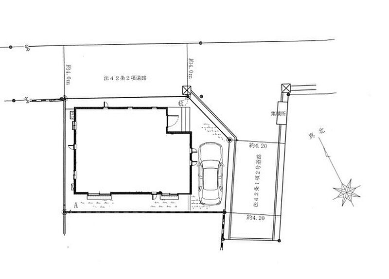 | 駐車場 | 1台 | 道路の幅員 | :北4m 東4.2m |