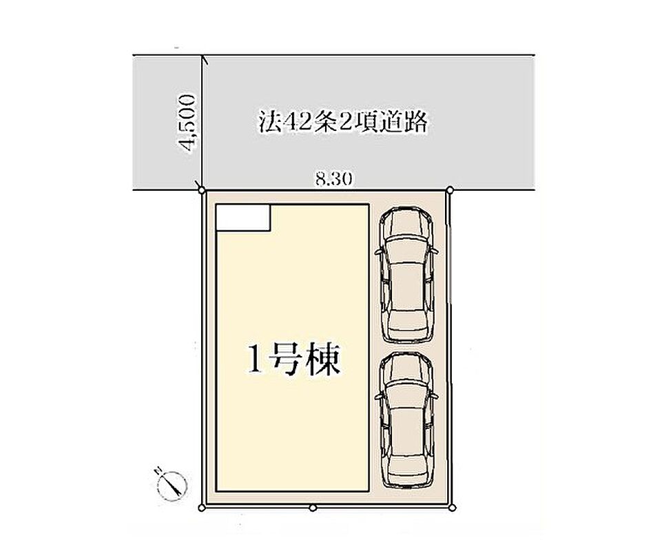 | 駐車場 | 2台 | 道路の幅員 | 1号棟:北東4.5m |
