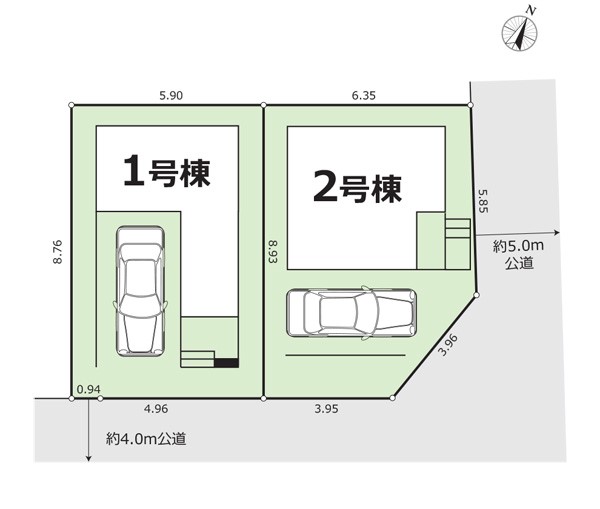 | 駐車場 | 1台 | 道路の幅員 | 1号棟:南東4m |