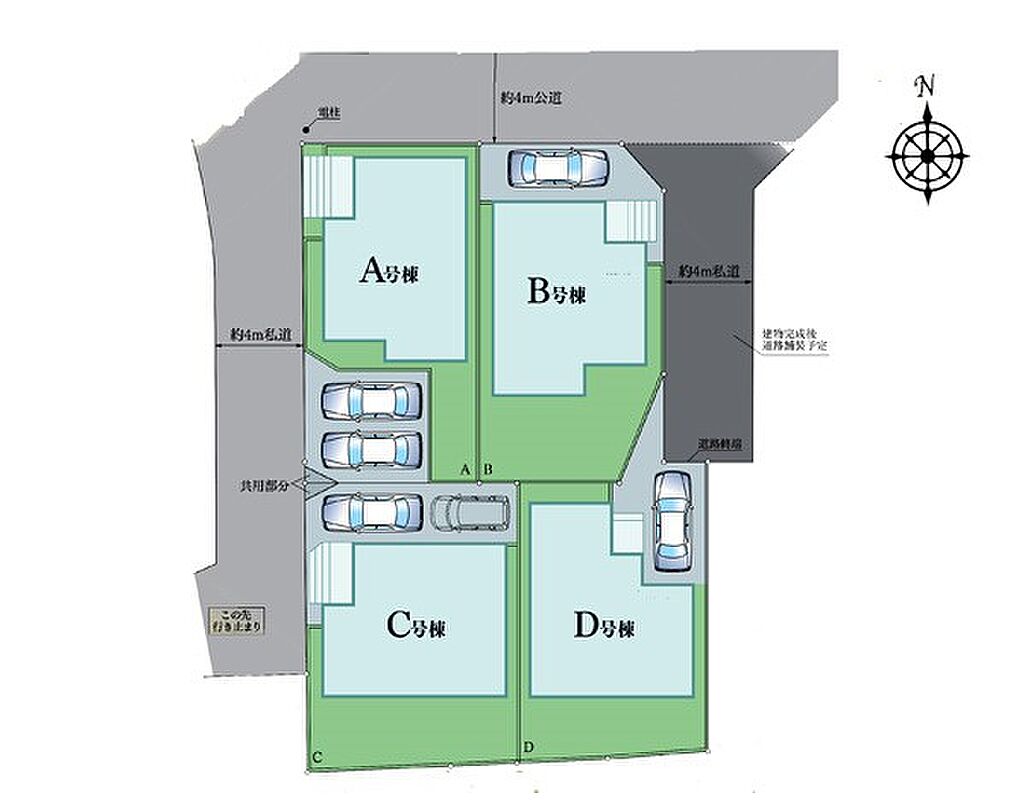 | 駐車場 | 1台 | 道路の幅員 | D号棟:北4m |