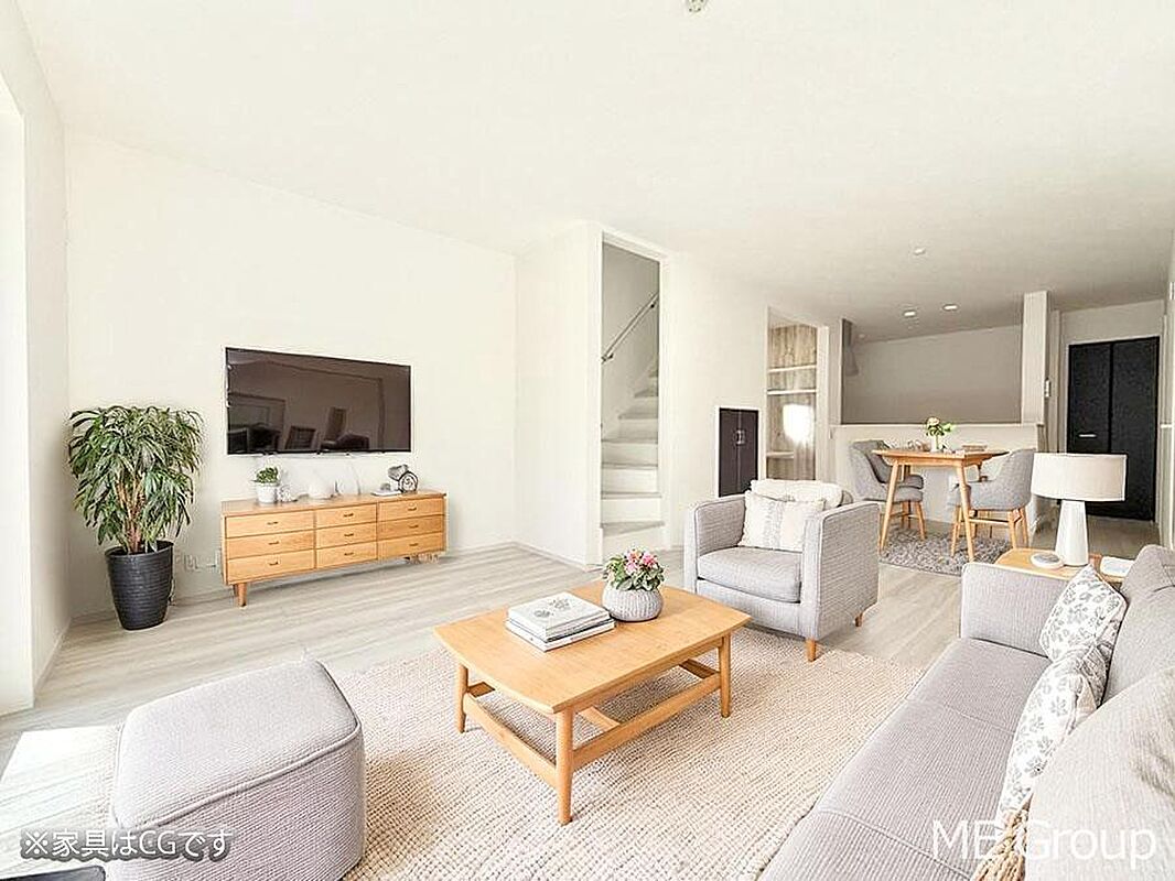 - ※完成予想図やCG合成画像は、門塀・植栽・庭・外観等、実際とは多少異なる場合があります。