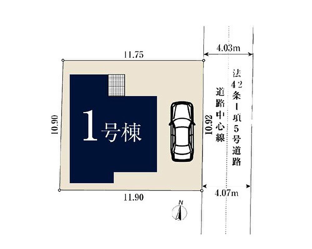| 駐車場 | 1台 | 道路の幅員 | 1号棟:東4.1m |
