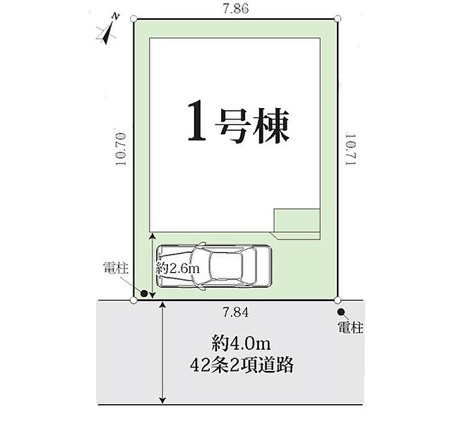 | 駐車場 | 1台 | 道路の幅員 | 1号棟:南東4m |