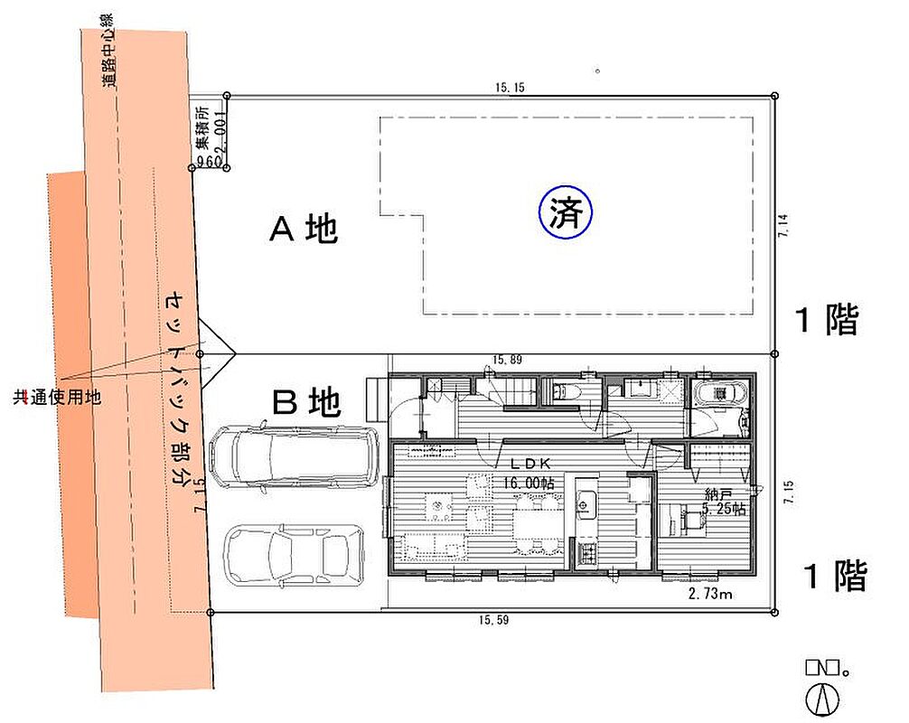 | 駐車場 | 2台 | 道路の幅員 | B号棟:西1.8m |