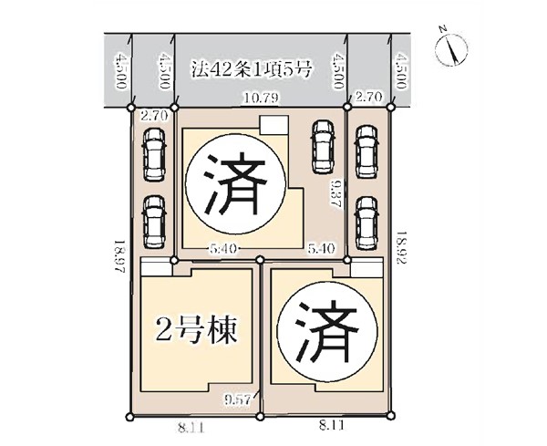 | 駐車場 | 2台 | 道路の幅員 | 2号棟:北4.5m |