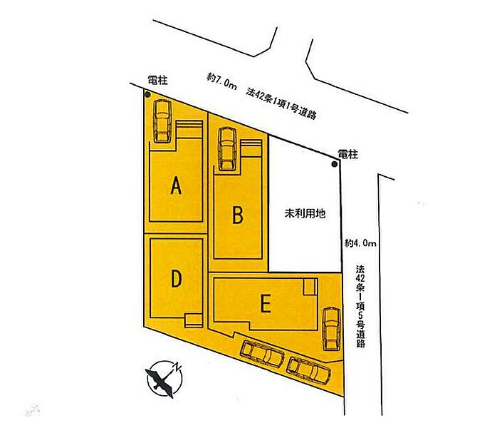 駐車場 1台 ~ 2台 道路の幅員 D号棟:南東4.6m /A号棟:北西7m /B号棟:北西7m /E号棟:南東4.6m