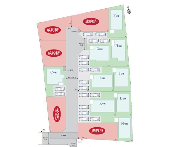 | 駐車場 | 2台 | 道路の幅員 | J号棟:西5.5m /C号棟:東5.5m /N号棟:西5.5m /K号棟:西5.5m /I号棟:西5.5m /G号棟:西5.5m /L号棟:西5.5m |