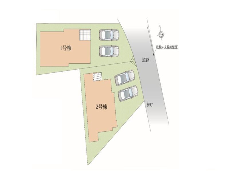 | 駐車場 | 2台 | 道路の幅員 | 1号棟:北東4.2m /2号棟:北東4.2m |