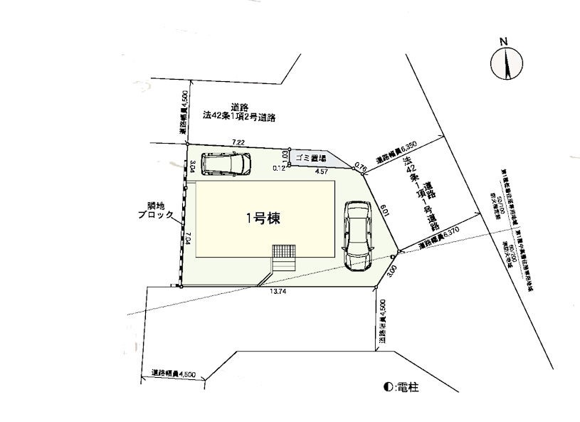 | 駐車場 | 2台 | 道路の幅員 | 1号棟:南4.5m 東6.3m 北4.5m |