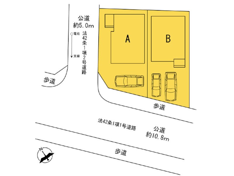 | 駐車場 | 1台 ~ 2台 | 道路の幅員 | A号棟:南西10.8m 北西5m /B号棟:南西10.8m |