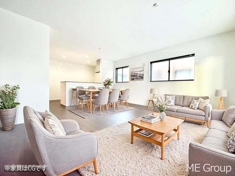 - ※完成予想図やCG合成画像は、門塀・植栽・庭・外観等、実際とは多少異なる場合があります。