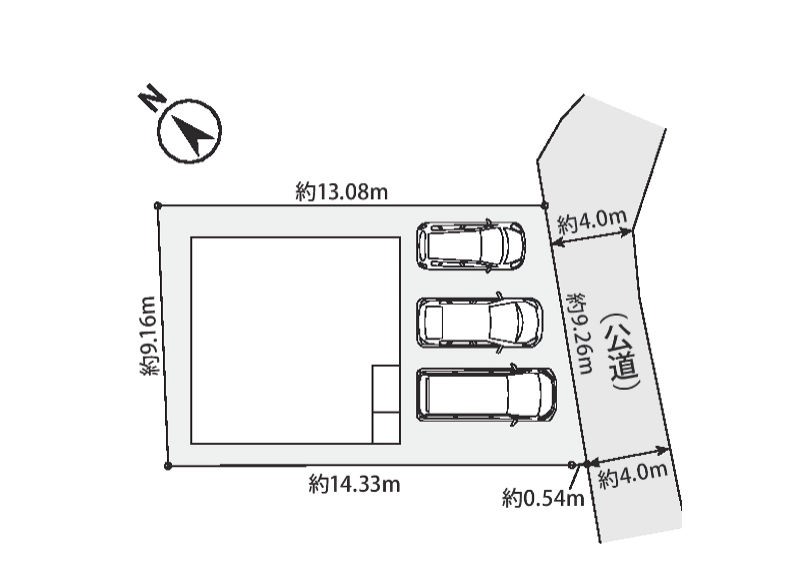 | 駐車場 | 3台 | 道路の幅員 | 1号棟:南東4m |