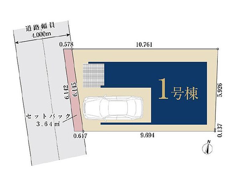 | 駐車場 | 1台 | 道路の幅員 | 1号棟:西4m |