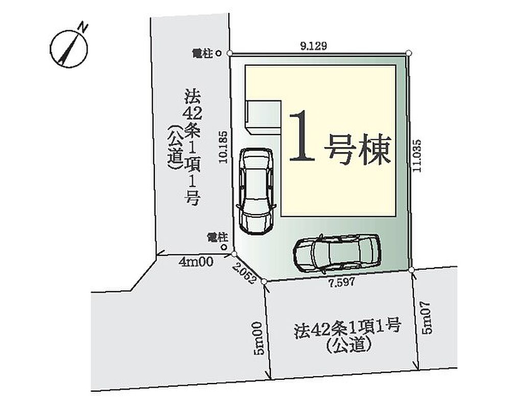 | 駐車場 | 2台 | 道路の幅員 | :南西4m 南東5m |