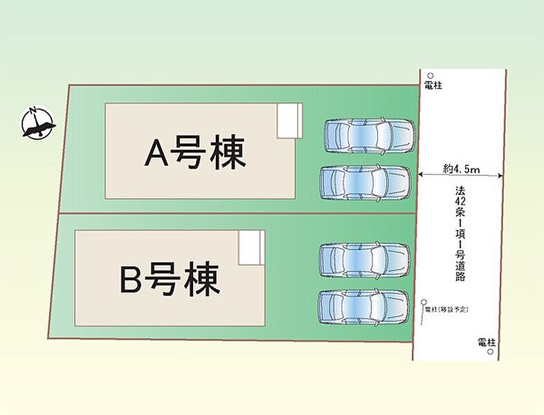 | 駐車場 | 2台 | 道路の幅員 | B号棟:南東4.5m /A号棟:南東4.5m |