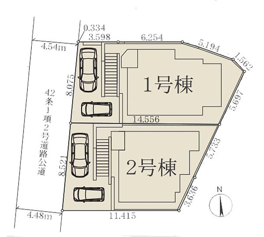 | 駐車場 | 2台 | 道路の幅員 | 2号棟:北西4.4m /1号棟:北西4.4m |
