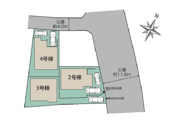 | 駐車場 | 2台 | 道路の幅員 | 4号棟:北4m /2号棟:東11.5m /3号棟:東11.5m |