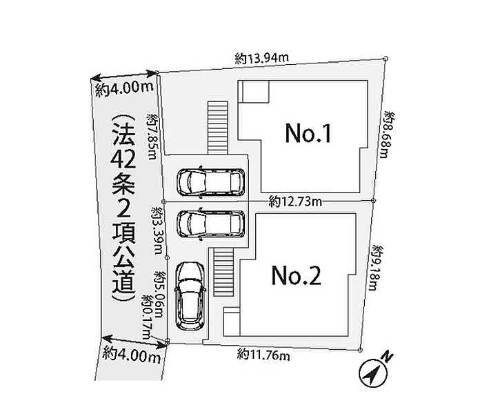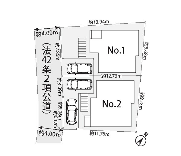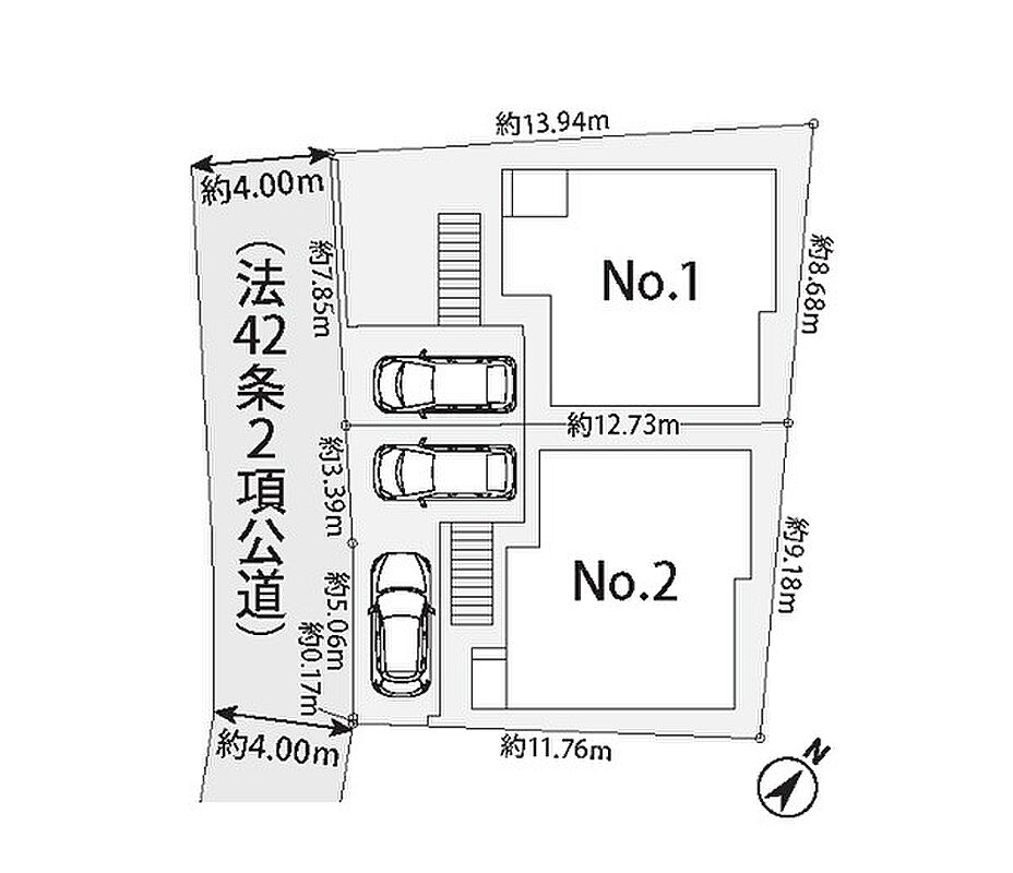 | 駐車場 | 2台 | 道路の幅員 | 2号棟:南西4m |