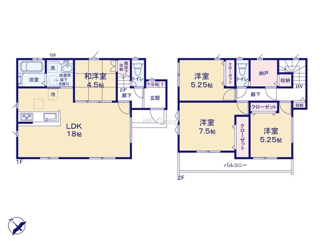 7号棟 間取り 4LDK 価格 3480万円 建物面積 96.88m2 土地面積 105.15m2 -