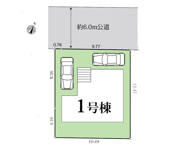 | 駐車場 | 2台 | 道路の幅員 | :北西6m |